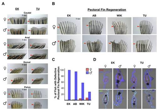 The Regenerative Capacity of Pectoral Fins Is Sex- and Strain-Dependent |