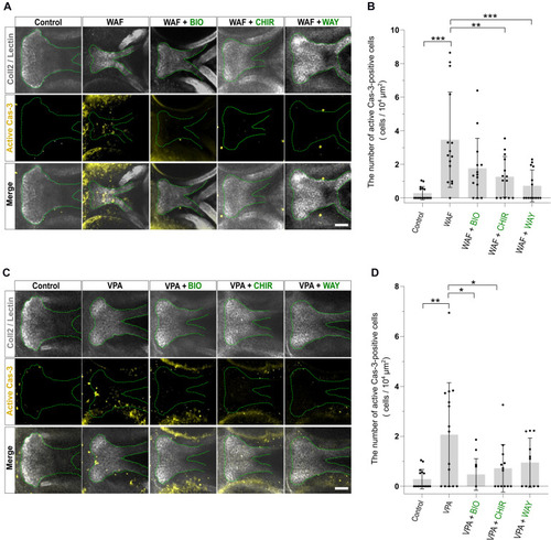 Apoptosis level was restored by combinatorial treatment with teratogen and Wnt agonists. PHENOTYPE: