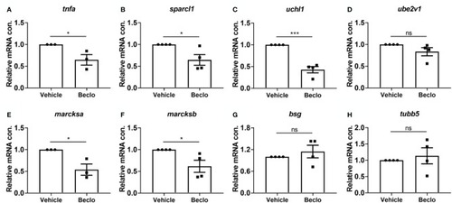 Effect of beclomethasone on gene expression levels in FACS-sorted macrophages. At 28 hpf, |