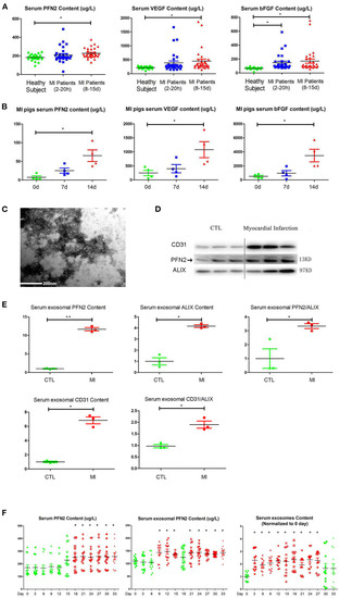 Increased PFN2 and exosomal PFN2 levels in the serum of patients with MI and in animal models. |