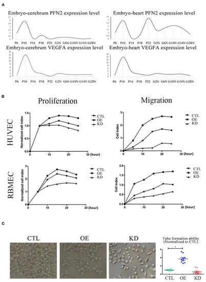 PFN2 promotes proliferation and migration of ECs, as well as tube formation and reaches the maximum level in 10-day embryo. |