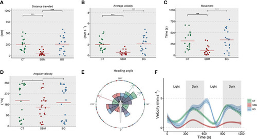 Changes in parameters linked to locomotor activity of zebrafish larvae. The measured parameters included |