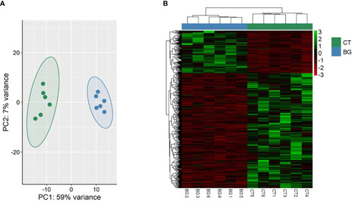 Transcriptome-based differences in the zebrafish larvae from the β-glucan group compared to the control group. Principal component analyses |
