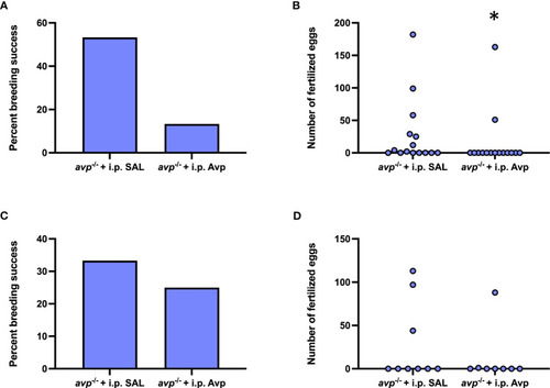 Knock-out of vasotocin reduces reproductive success in female zebrafish, Danio rerio