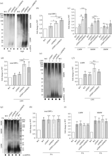DPC analysis in Tdp1 and Sprtn deficient embryos under physiological conditions and after CPT (10 µM, 1 h) and FA (5 mM, 30 min) treatment. ( |