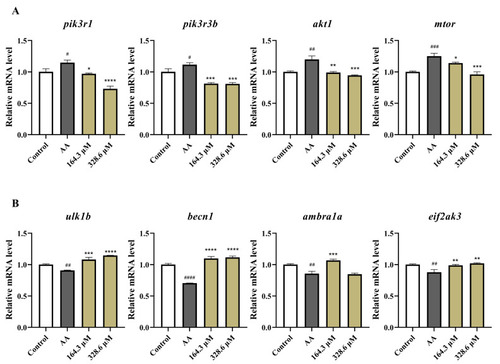 Reduction in the AA-induced inflammatory response in zebrafish treated with HPA. ( |