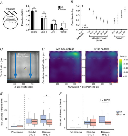 Station holding within flow, but not acoustic startle is impaired in |