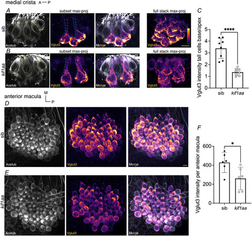 Kif1a and intact microtubules maintain synaptic-vesicle populations at ribbon synapses in zebrafish hair cells