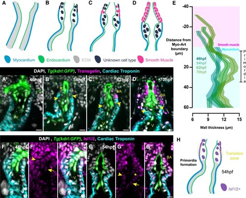 Arterial valve primordia form at the transition zone. ( |