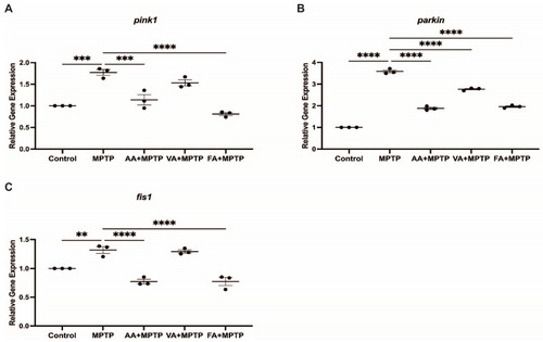 Effects of natural phenolic compounds on mRNA level of genes related to mitochondrial fission. Relative gene expression of ( |