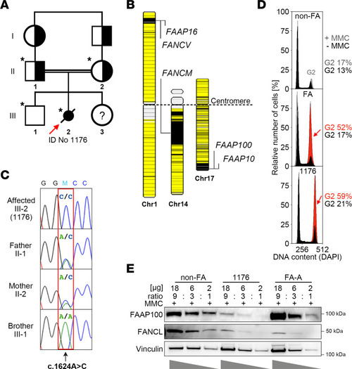 Genetic inactivation of FAAP100 causes Fanconi anemia due to disruption of the monoubiquitin ligase core complex