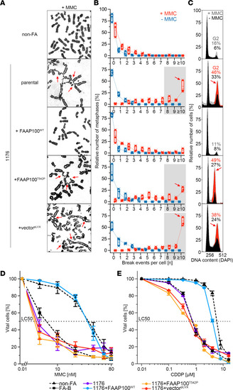 Ectopic expression of FAAP100WT or FAAP100T542P in FAAP100-deficient cells. ( |