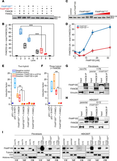 Ligase activity, interaction, and subcellular localization studies with FAAP100T542P. ( |