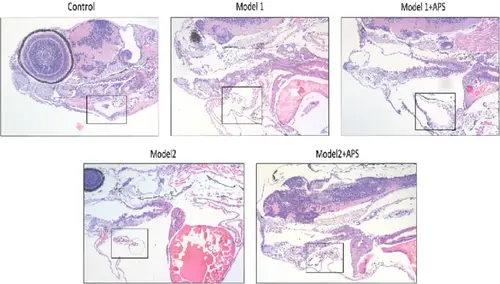 APS reduces swelling to protect myocardial cells from injury on DCM Zebrafish. H&E staining of the heart area in zebrafish |