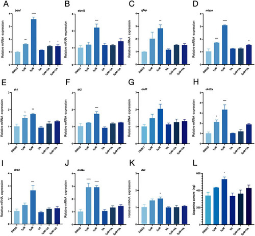 Neurodevelopment and relative expression of dopamine-related genes. RNA was extracted from at least 30 fish each time. |