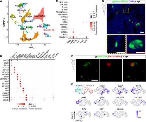 Identification of potential zebrafish RSC clusters via scRNA-seq analysis of injured kidneys. ( |