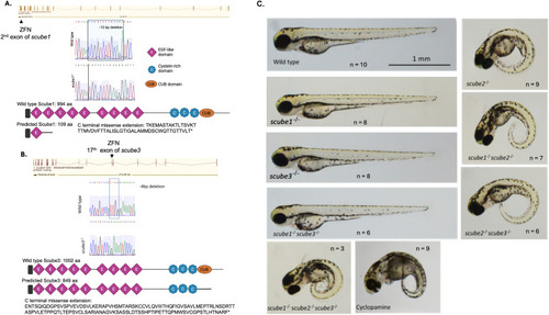 Reprinted from Developmental Biology, , Tran, Q.D., Mirkovic, I., Miles, L.B., Berger, J., Wood, A.J., Ruparelia, A.A., Shehni, S.A., Currie, P.D., Redundant and novel functions of scube genes during zebrafish development, , Copyright (2025) with permission from Elsevier. Full text @ Dev. Biol.