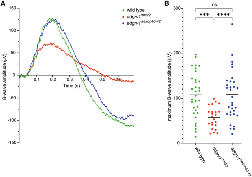 ERG recordings reveal normal retinal function in (A) Representative ERG traces of wild-type, |
