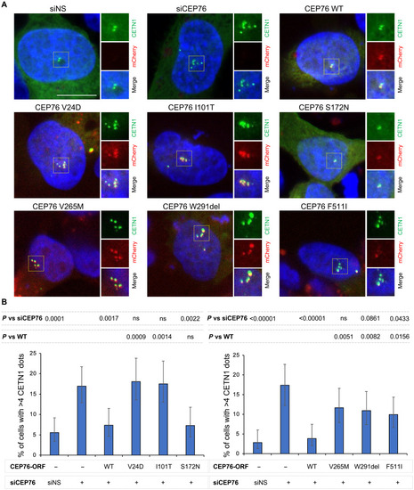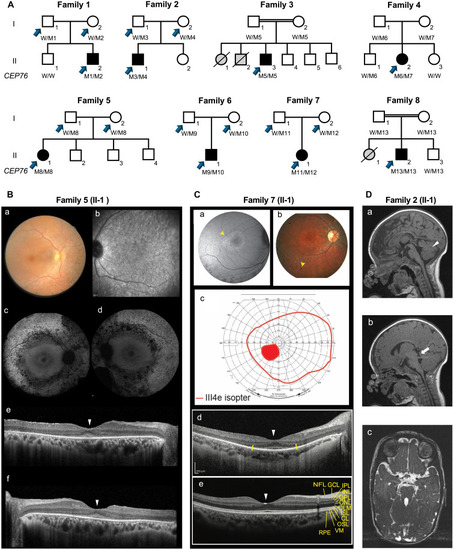 CEP76 deficiency in the family 7 proband fibroblasts impairs both primary cilium formation and structural integrity. ( |
