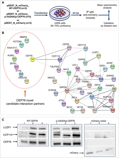Pull-down and MS analyses expand the CEP76 interactome. ( |
