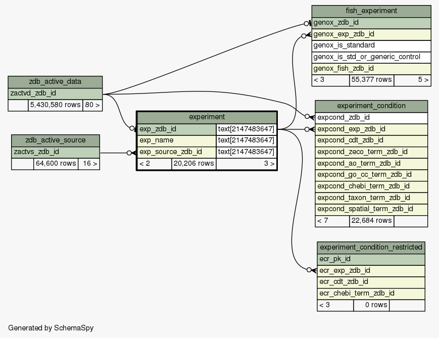 | Table zfindb.public.experiment | Generated by SchemaSpy |