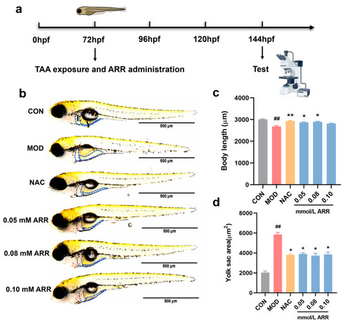 Effects of ARR on TAA-induced zebrafish larvae developmental toxicity. ( |