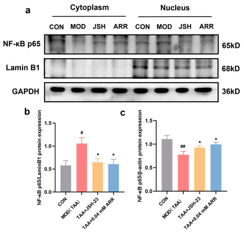 Effect of ARR on nuclear translocation of NF-κB p65. ( |
