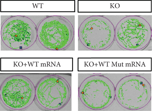 Characterization of prps1a gene editing and phenotypic analysis in zebrafish. (a) Schematic of the zebrafish prps1a gene structure, highlighting the gRNA target sites. Arrows indicate gRNA binding sites, with exons represented as boxes. (b) Sequencing analysis of mutations induced by the two gRNAs showing various mutation types, including insertions, deletions, and substitutions. (c) Validation of gRNA activity through cleavage assays, assessing the efficiency of double-strand break induction by each gRNA. (d) Hair cell staining in zebrafish larvae across four experimental groups: wild-type (WT), gene KO, KO with wild-type mRNA injection (KO+WT mRNA), and WT with Cys165Tyr mutant mRNA injection (WT+Cys165Tyr). Scale bar = 200  μm. (e) Confocal microscopy images of hair cells in zebrafish larvae from different experimental groups showing structural integrity and localization. Scale bar = 20  μm. (f) Quantification of hair cells in different experimental groups. (g) Behavioral tracking of zebrafish larvae, recording movement patterns to assess the impact of prps1a gene editing on behavior. (h) Line graph of swimming distance of zebrafish with different genotypes under noise. (i) Statistical analysis of behavioral data of total distance. (j) Statistical analysis of behavioral data of first distance. (k) Representative microscopic images of hair cells stained with AO in zebrafish larvae from different experimental groups. Scale bar = 100  μm. (l) Quantification of fluorescence intensity in hair cells of the larvae. Data were compared using ANOVA followed by post hoc tests, with significant differences indicated (p < 0.05). Data are presented as mean ± SD.  ∗p < 0.05,  ∗∗p < 0.01,  ∗∗∗p < 0.001, and  ∗∗∗∗p < 0.0001.