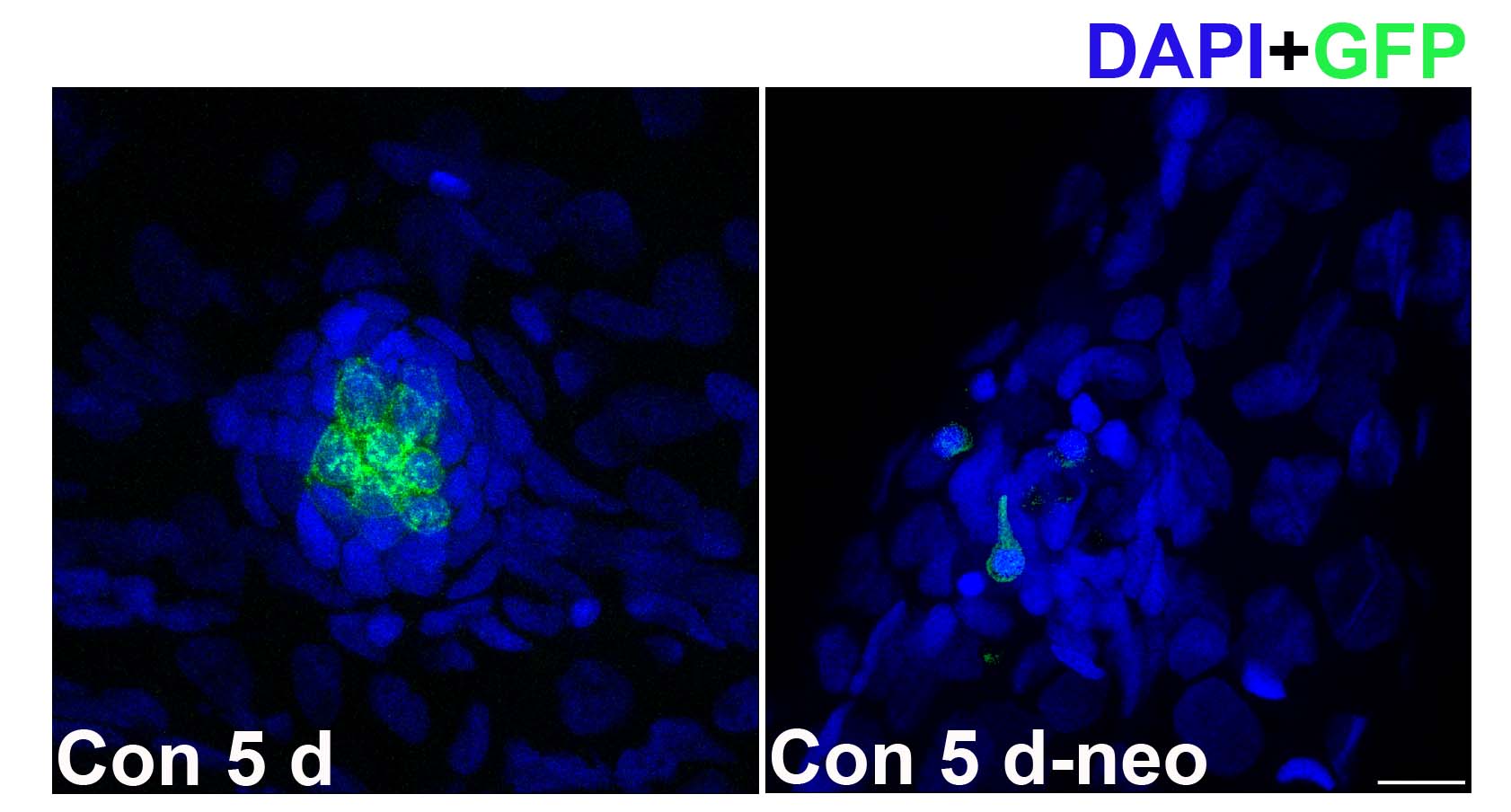 Five dpf zebrafish larvae treated with 400 μM neomycin to kill mature lateral line hair cells.