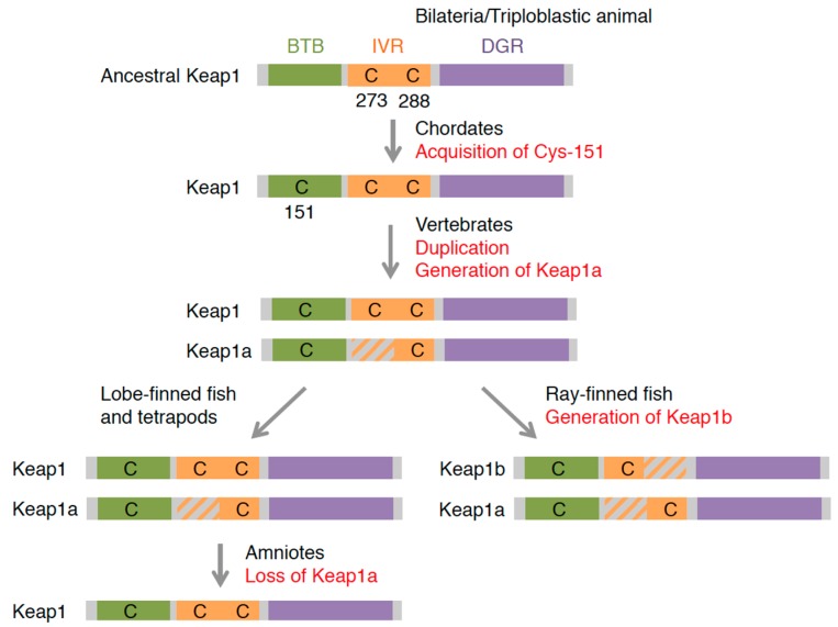 The evolution of Keap1 proteins deduced from amino acid sequences.