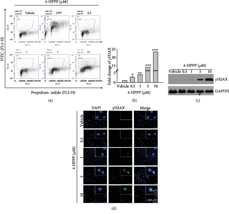 Assessment of DNA damage induced by 4-HPPP. (a) H1299 cells were administered the indicated concentrations of 4-HPPP for 48 h. Afterward, 4-HPPP-induced DNA damage was detected using a flow cytometry-based
