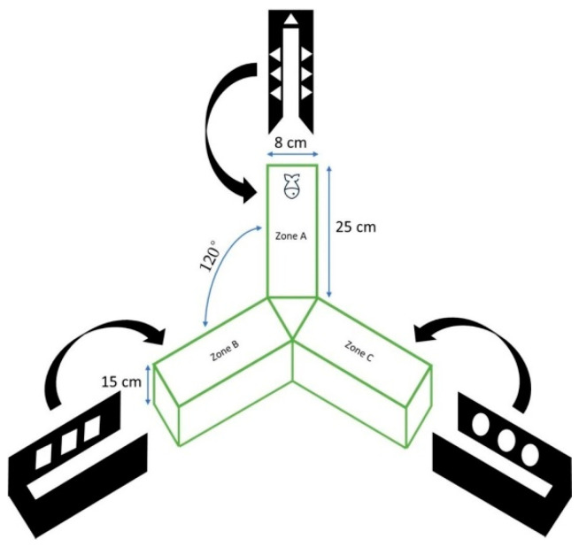 Figure 1 Schematic representation of Y maze apparatus, as in [30], with minor modifications. Removable arms were constantly swapped around.