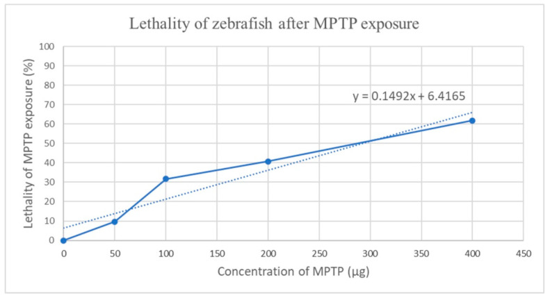 Figure 2 LD50 values calculated using the linear regression of the constructed curves, based on the graphical method of Miller and Tainter in the Excel software.