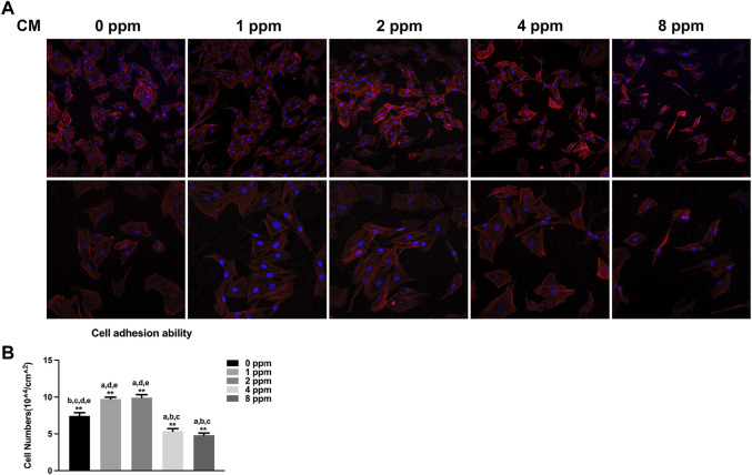 Cell adhesion ability assay. The adhesion ability of MC3T3-E1 cells was analyzed by counting the stained nuclei with DAPI using a confocal laser scanning microscope (CLSM) after incubation.