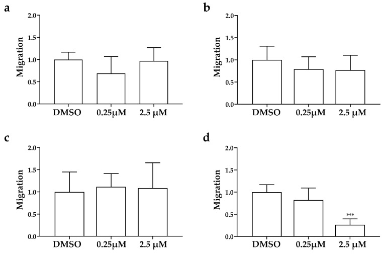 Effects of AXI on invasiveness of human LC cells in grafted zebrafish embryos. Quantification of cell spread in the tail of embryos injected with NCI-H727 (