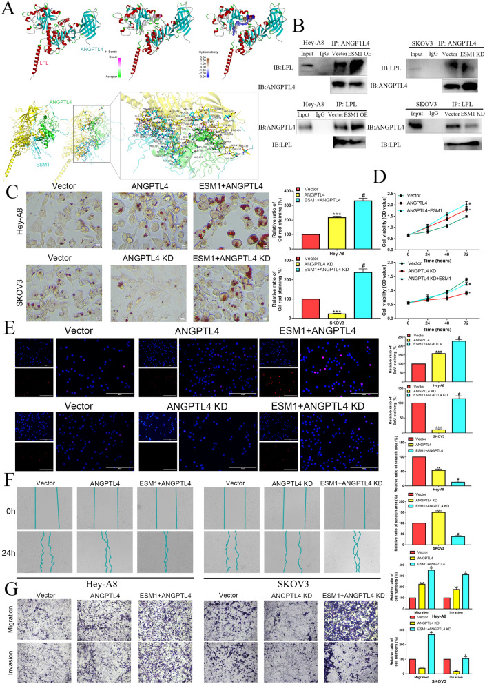 ESM1 promotes ANGPTL4 to combine with LPL by accelerating proliferation, invasion and lipid accumulation in OC cells.