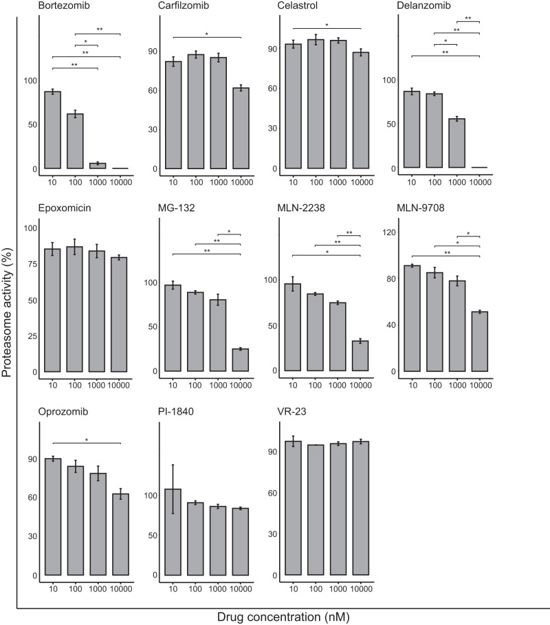 Fig. 2 All eleven proteasome inhibitors were tested for their ability to inhibit the activity at the β5 proteasome site.