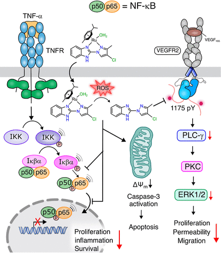 Scheme 2 Illustration Depicting the Mechanism of the Inhibition of NF-κB Signaling Cascade Shown by the Complexes (Represented by Complex 12)
