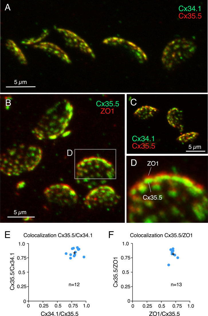Figure 3. Expansion microscopy with anti-Cx35.5 and anti-ZO1.