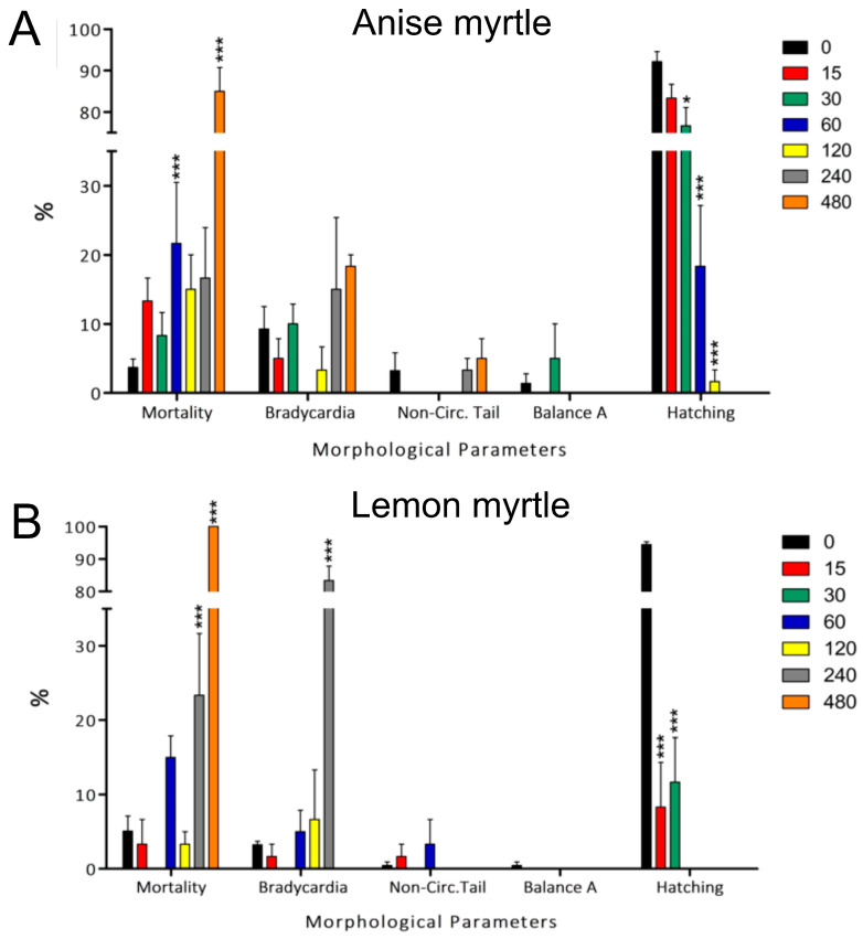 Morphological alterations were observed in zebrafish embryos exposed to anise (