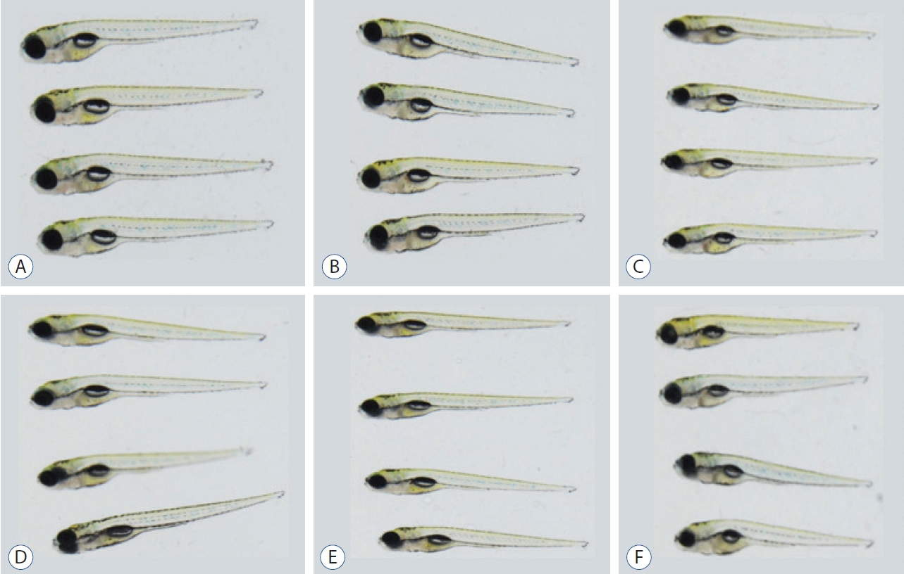 Fig. 3 The maximum concentration of the drugs that did not induce any morphological changes. A : Levodapa 1 mmol. B : Nifedipine 10 μmol. C : Nimodipine 3.5 μmol. D : Diethylstilbestrol 0.3 μmol. E : Calcitriol 0.25 μmol. F : Luteolin 100 μmol.