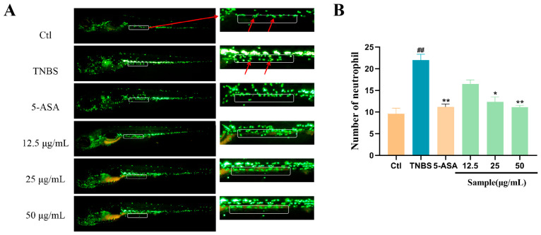 Effect of Altechromone A on the quantity of neutrophils in TNBS-induced IBD model. (