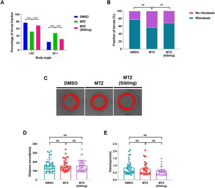 Depletion of insulin production results in defective rheotaxis behavior, but not locomotor behavior, in ins:epNTR-mCherry zebrafish.