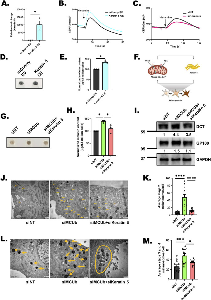 Fig 5 Keratin5 regulates mitochondrial Ca2+ uptake, melanosome maturation, and positioning.