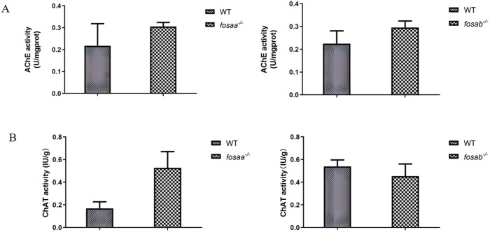 The acetylcholinesterase (AChE) acetylcholine and transferase (AChT) activity in the brain of WT,