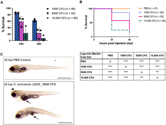 Fig. 1 Survival of zebrafish larvae infected with C. turicensis z3032.