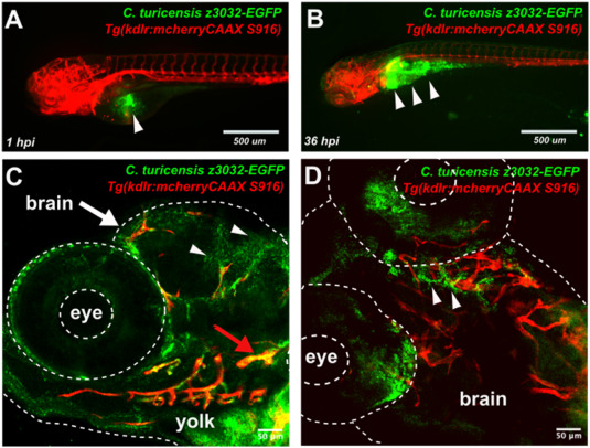 Fig. 2 Infection of zebrafish larvae with C. turicensis z3032eGFP.