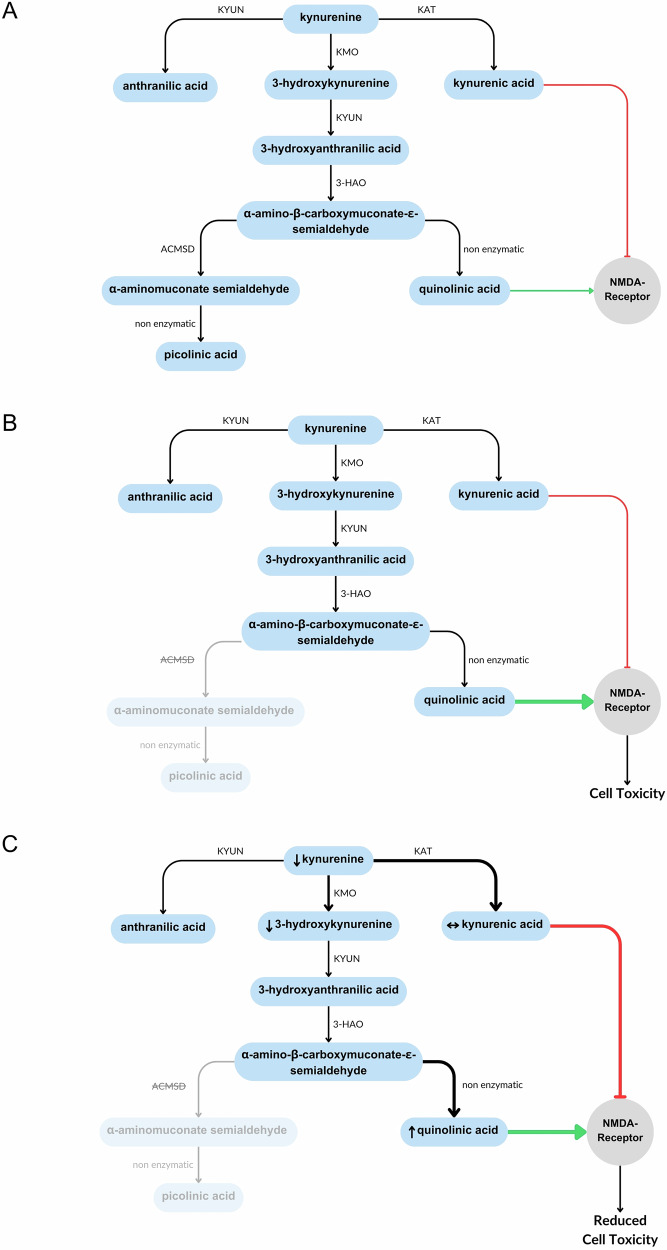 Summary of kynurenine pathway metabolite changes in