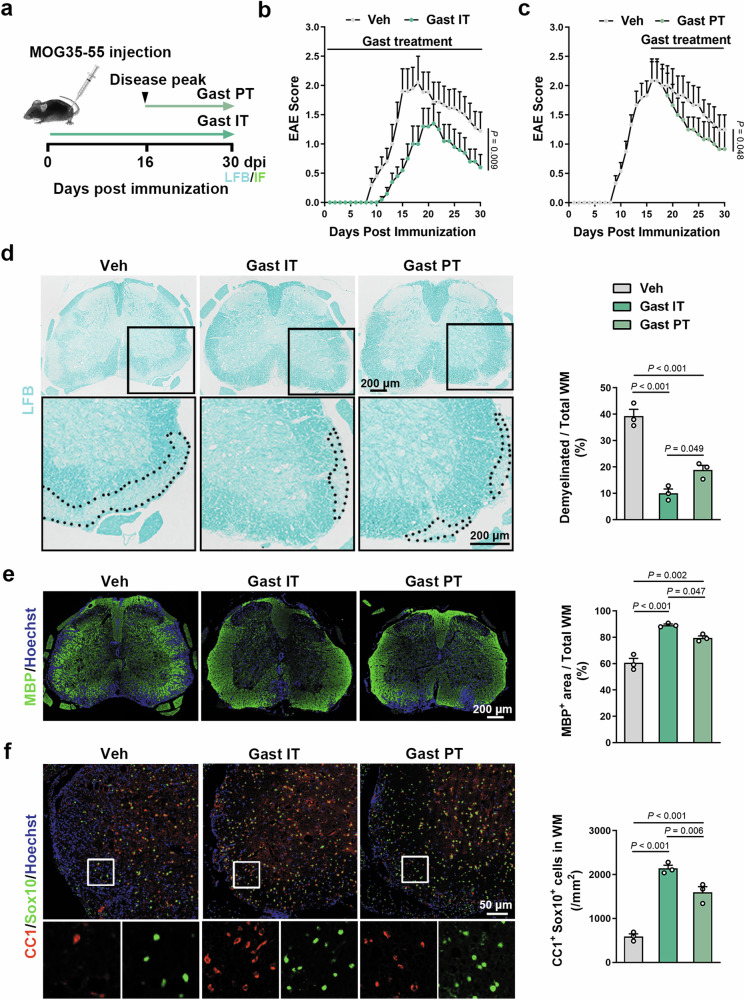 Fig. 6 Gastrodin treatment effectively enhances remyelination in EAE mice.