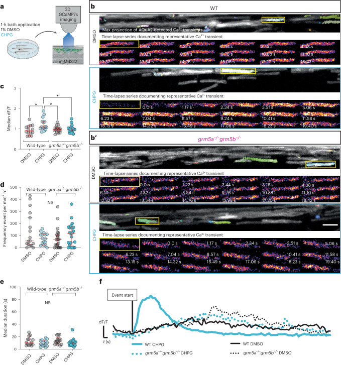 Fig. 4 Endogenous mGluR5 is required for CHPG-induced high-amplitude myelin Ca2+ transients to occur.